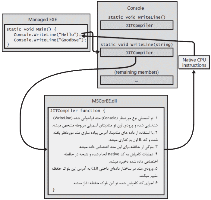 بنابراین تنها تو بار اول اجرای یه متد، به دلیل اجرای کامپایلر JIT، کاهش کارایی و سرعت اجرا وجود داره و دفعات بعدی فراخوانی، اجرای متد با سرعت اجرای یه کد native بدون کاهشی در کاهشی در کارایی اون انجام میشه.