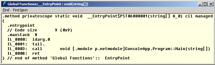 .method privatescope static void __EntryPoint$PST06000001(string[] A_0) cil managed