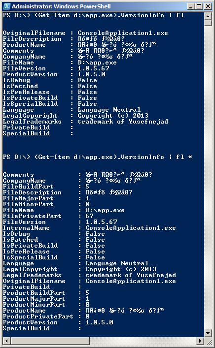 میبینید که تمامی اطلاعات نسخه فایل با این روش بدست میاد. یادگیری PowerShell ویندوز رو میتونین از اینجا شروع کنین.