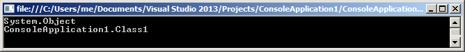 Console.WriteLine(new object().ToString()); Console.WriteLine(new Class1().ToString());